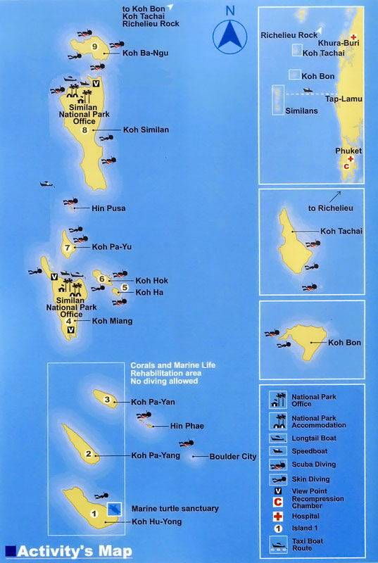 We’ve collected dive site maps for many of our favourite places on the Similan Islands, Koh Bon, Koh Tachai, Richelieu Rock and local wrecks too.